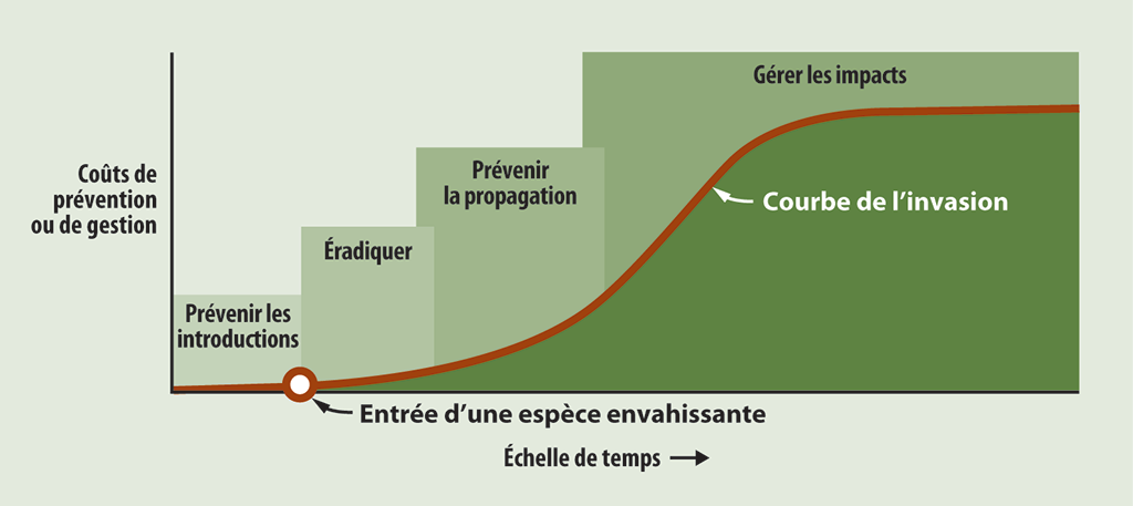 Il est donc moins coûteux de prévenir l’introduction d’une espèce envahissante que de tarder à agir et de la gérer lorsqu’elle est installée.