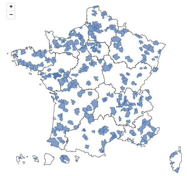 Carte des communes et intercommunalités engagées dans la démarche CLIMAT-AIR-ENERGIE (anciennement CIT’ERGIE)